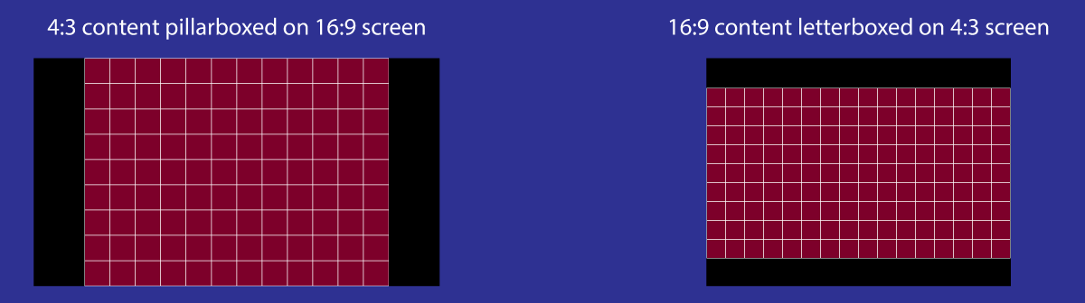 Mixed aspect ratios will always introduce some form of letterboxing or pillarboxing. If your show is 16:9 and a presenter brings in a 4:3 presentation, that content will be shown with vertical black bars on the sides of the screen, known as pillarboxing. 16:9 content on a 4:3 screen doesn’t happen very often anymore, but that would introduce letterboxing, or horizontal space at the top and bottom of the screen.