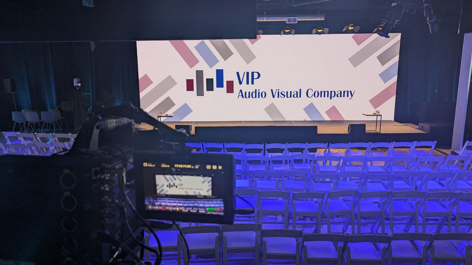 Beyond the technical aspects, VIP Audio Visual Company set up drapery around the perimeter of the room to eliminate outside lighting and distractions, ensuring that the focus stayed on the event and the message. Flown lighting provided color and illumination throughout the venue, and was animated to provide subtle motion during walk-in and walk-out periods.